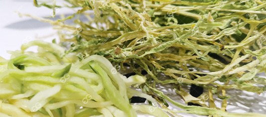 6. Garlic slices air-dried. The cleaned garlic slices enter the air dryer. The air dryer is designed to be turned and conveyed multiple times, and has a reverse air device to prevent dead spots from drying. The air dryer has a good drying effect.