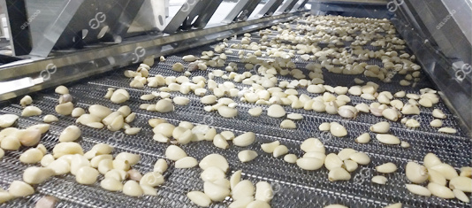 3.Peel garlic. Put the garlic with garlic skin into the garlic peeling machine, and use compressed air to make the garlic peel without damaging the surface of the garlic.