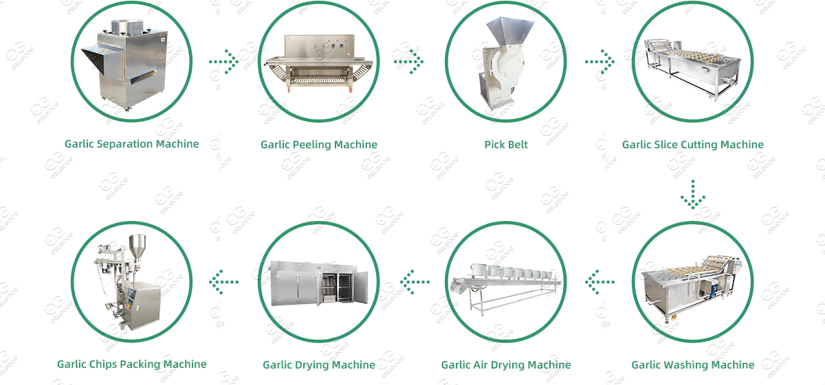 Our fully automatic dehydrated garlic flakes production line includes elevator, garlic separating machine, garlic peeler, picking belt, garlic slicer, garlic washing machine, air dryer, continuous dryer, bucket elevator and packaging machine. The garlic is lifted, divided, peeled, selected, sliced, washed, air-dried, dried, moisturized, and packaged, and finally dehydrated garlic cloves are obtained. The entire garlic flakes production line is made of high-quality stainless steel, with a bright and beautiful surface, not easy to rust, long service life, and easy to clean.