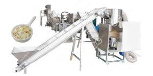 It shows that the garlic peeling packaging line solves all the steps from garlic cloves to garlic peeling, garlic washing and packaging. The configuration of the solution can be customized according to the customer